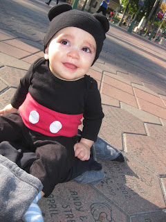 Parker got this outfit for Valentine's Day and it still fit him, so why not be Mickey Mouse at Disneyland. Actually, Mickey Mouse was in love with Parker during the photo session!